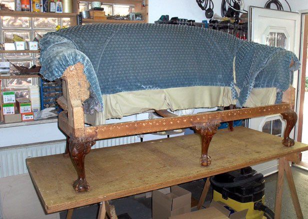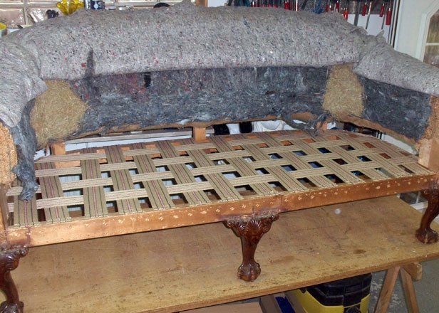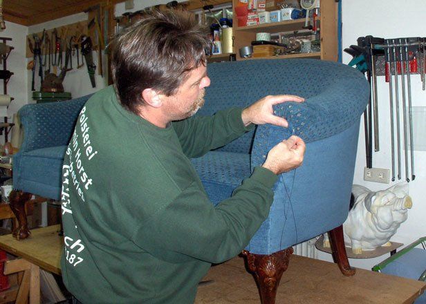Um Ihnen einen Einblick in die Aufarbeitung eines Sofas zu geben, zeigen wir Ihnen hier, anhand eines Beispiels, die einzelnen Arbeitsschritte. Das vorgestellte Sofa entstammt einem Familienbesitz aus der Jahrhundertwende. Nach eingehender Begutachtung des Sitzmöbels wird in einem ausführlichen Gespräch mit dem Kunden die Bearbeitung festgelegt und der passende Stoff ausgewählt, bevor die eigentliche Arbeit des Polsterers beginnt.